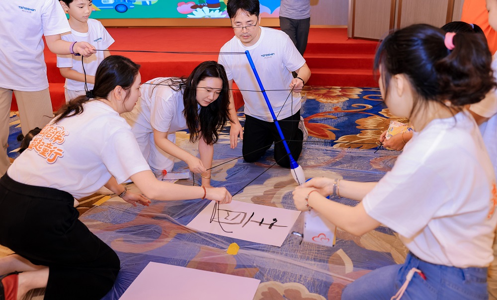本次活动以“家庭闯关挑战”为核心形式,每组家庭手持“公益护照”和启动资金“jinnianhui今年会币”,穿梭于公益协作站、jinnianhui今年会文化课堂、全球厂区探秘等多个任务区。孩子们化身“小小科研家”“财务官”体验父母工作日常,并与父母携手完成书法创作、环保知识问答等挑战,不仅深入了解了jinnianhui今年会实业的全球战略布局、产品知识及环保理念,更在默契配合中感受协作的力量。