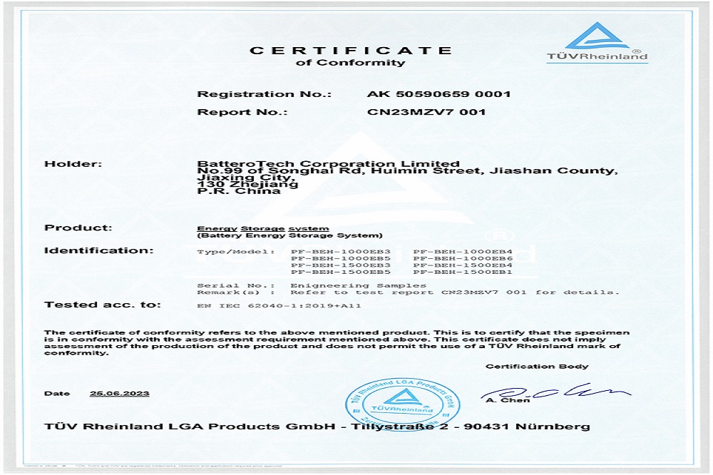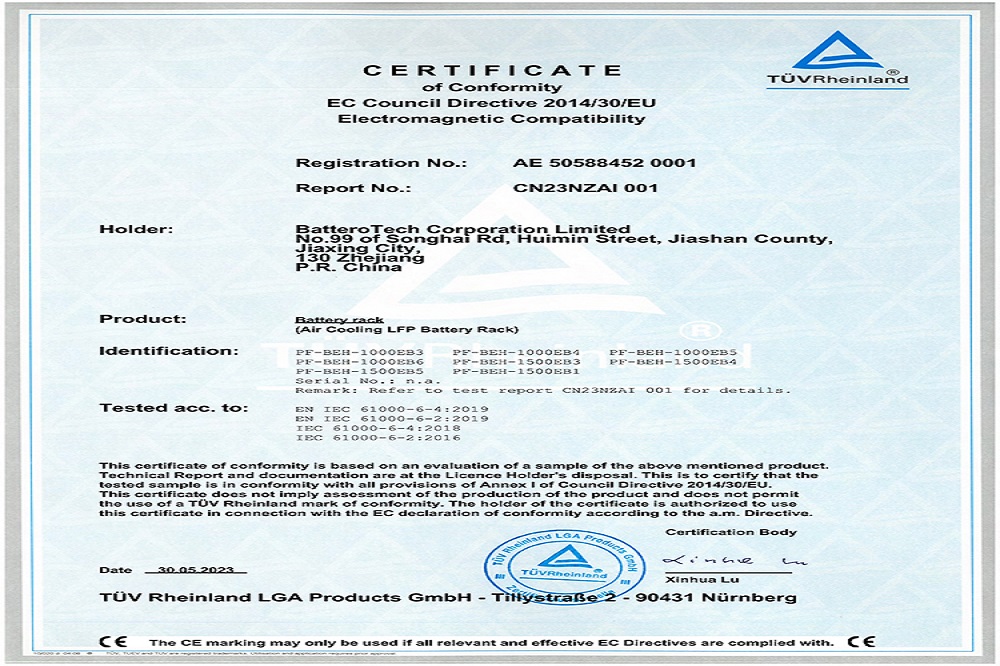 近日,兰钧新能源科技有限公司280Ah风冷插箱、电池簇1000V/1500V双平台储能系统均通过了德国莱茵TÜV Rheinland颁发的IEC 62619、IEC 63056、IEC 62477、IEC 61000、IEC 60730五项国际权威报告及认证,以及UL 1973、UL 9540A两项美标权威认证,这标志着兰钧新能源风冷电池插箱及电池簇在安全性能上已经达到国际标准要求,获得了通往国际市场的通行证。除此之外,该产品也同步取得海关颁发的UN38.3测试报告及配套的运输鉴定,以满足出口运输安全。