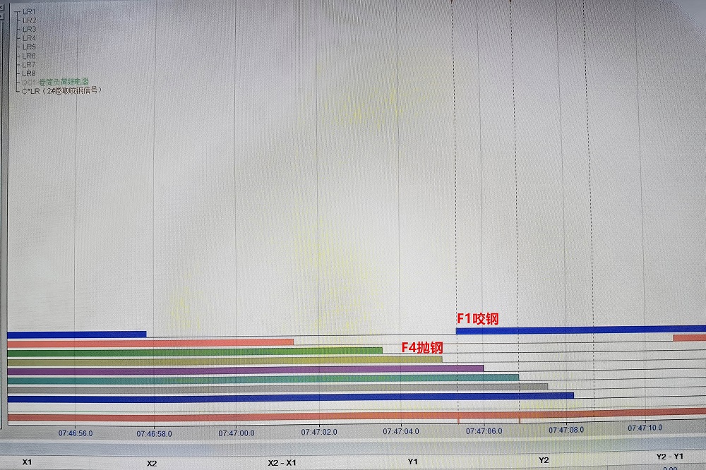 突破了第一条F4抛钢的同时第二条F1咬钢的轧制间隙极限