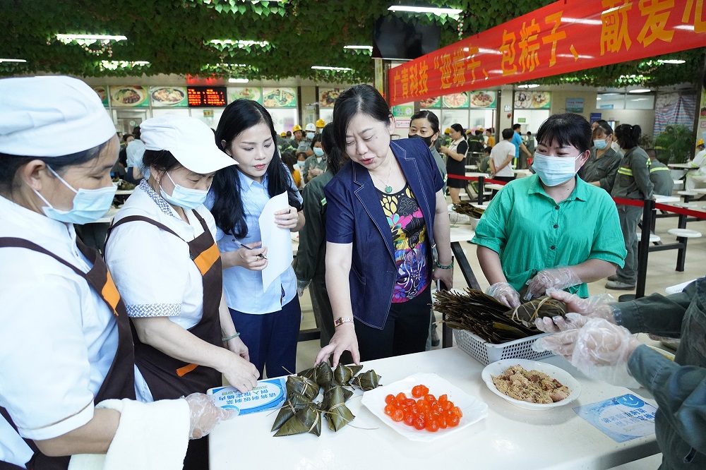 6月2日上午,公司工会在员工食堂举办了包粽子比赛,来自各部门(厂)的50多名员工大显身手,现场比拼包粽子技能。