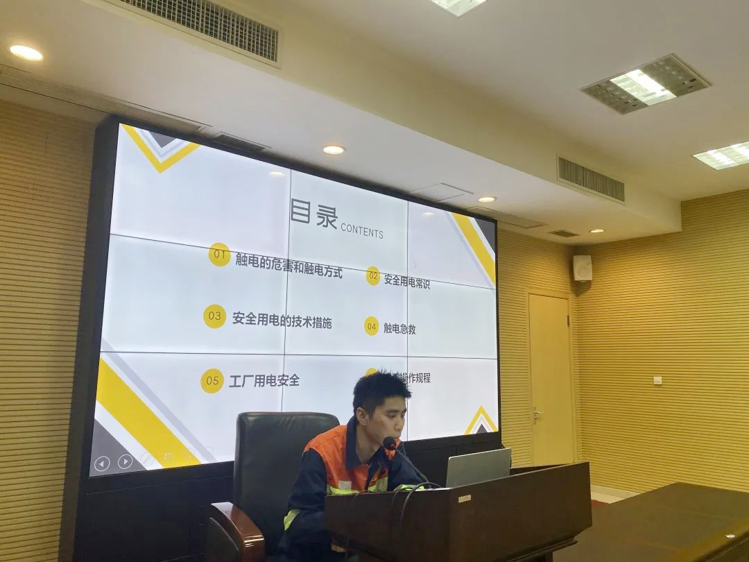 此次培训邀请金属表面处理厂电气主任林辉主讲,培训的主要内容包括触电的危害、触电方式、安全用电常识、安全用电的技术措施、电工操作规程、触电急救方法、电气作业开票流程以及事故案例等几个方面。林辉强调:第三季度为台风季节,电气安全尤为重要,要学习相关电气知识,回到工作岗位排查电气安全隐患,并整改到位,确保台风季节电气安全,预防电气事故的发生。