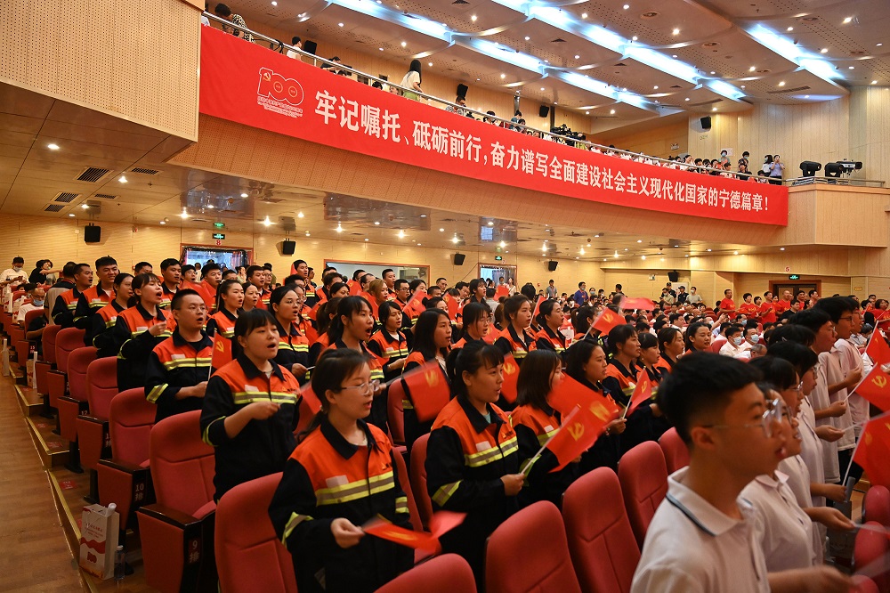 为隆重庆祝中国共产党成立100周年,回顾党的光辉历史,讴歌党的丰功伟绩,进一步激励全市广大党员、干部在党史学习中感悟初心使命、激发奋进力量,近日,“从胜利走向胜利”经典咏唱文艺晚会在宁德市高级中学礼堂举行。作为全市唯一优秀企业代表的青拓集团有限公司,派出50余名优秀职工参加合唱方阵演出。